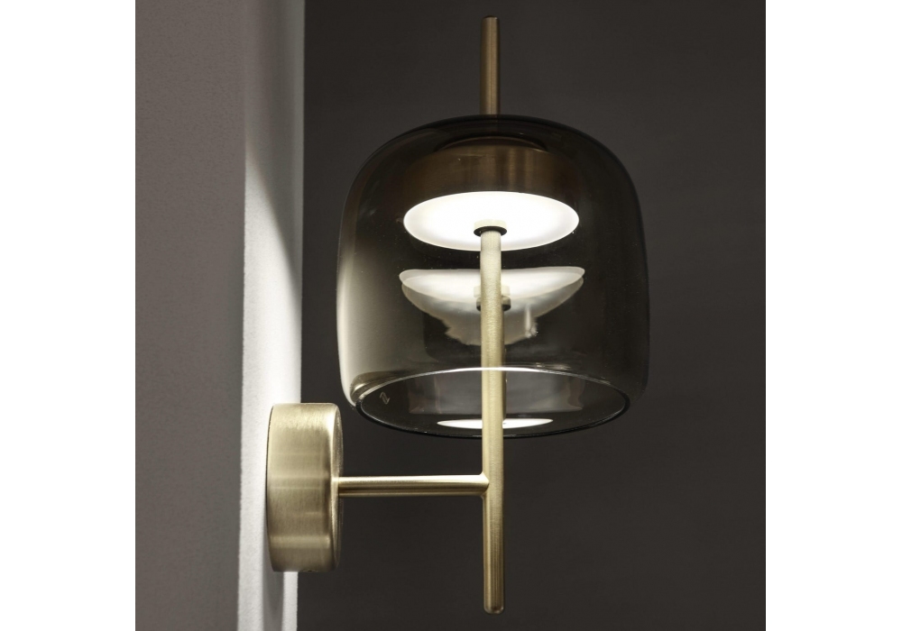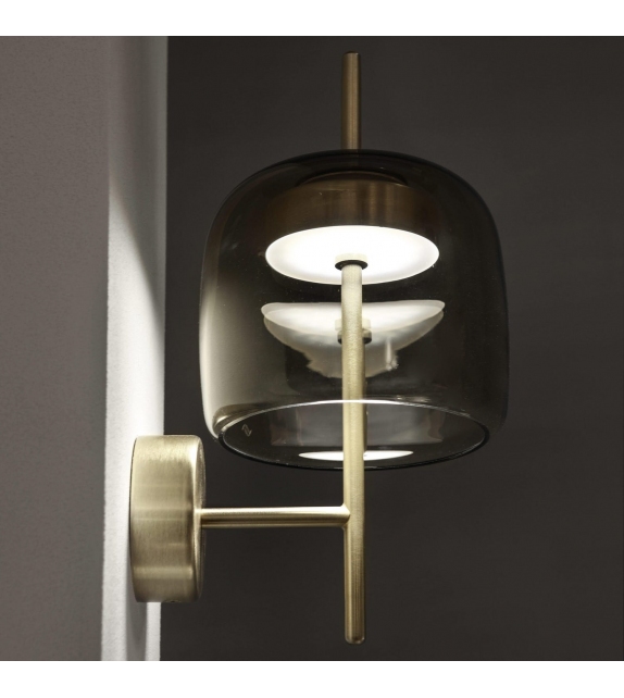 Jube diseñada por Favaretto & Partners para Vistosi es una lámpara de pared con estructura portante en metal pintado. El difusor es de vidrio soplado circular realizado en varios acabados y adopta una fuente de luz LED regulable en diferentes gradaciones de luz.