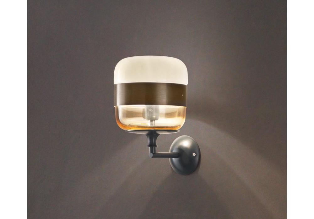 Futura diseñada por Hangar Design Group para vistosi es una lámpara de pared con estructura portante pintada de negro. El difusor tiene forma de cristal redondeado y adopta una fuente de luz LED o halógena con casquillo E27. Futura está disponible en diferentes acabados de difusor.
