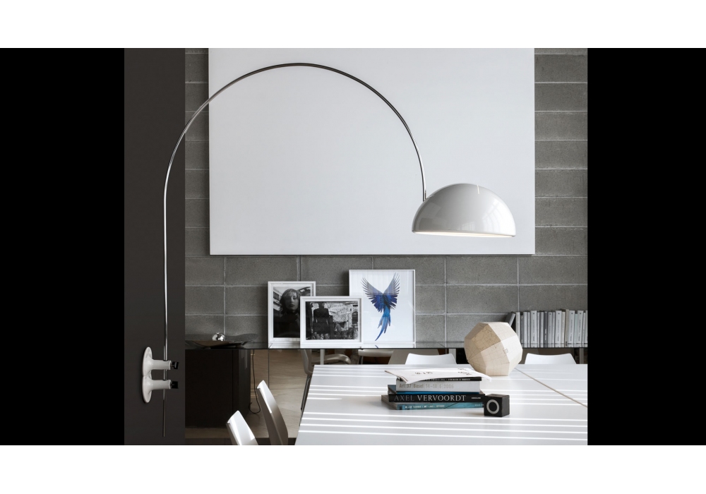 Coupè diseñada por Joe Colombo para Oluce es una lámpara de pared con barra arqueada en metal tubular cromado orientable. El difusor está fabricado en aluminio termoesmaltado y apantalla una fuente de luz. Coupè está disponible en diferentes modelos y acabados.