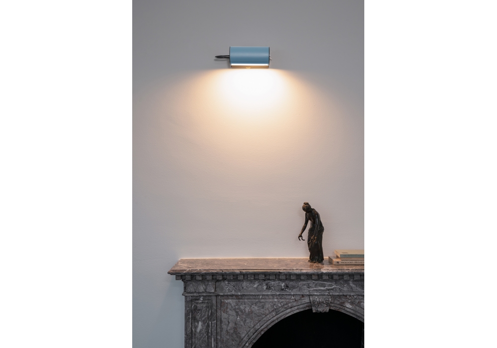 La lámpara de pared Cylindrique diseñada por Charlotte Perriand para Nemo es una lámpara de pared cilíndrica en metal pintado antracita y azul. La fuente de luz adoptada es con acoplamiento E14 y puede adoptar lámparas LED, halógenas y fluorescentes con función de atenuación. El aplique Cylindrique está disponible en diferentes tamaños y acabados.