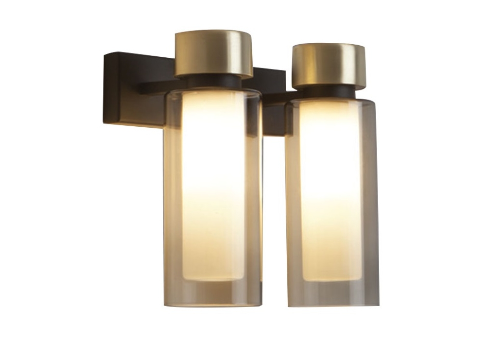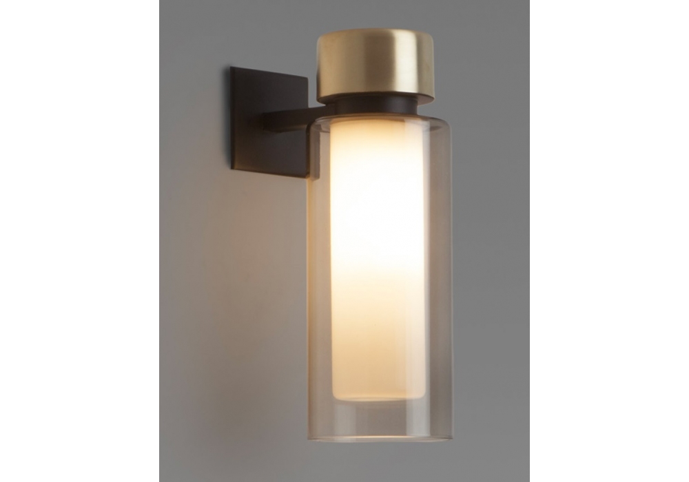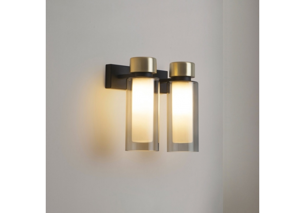 560 Osman diseñada por Corrado Dotti para Tooy es una lámpara de pared enriquecida con detalles en metales preciosos y difusores cilíndricos de doble pared realizados con vidrio transparente o ahumado. Disponible en versiones: estándar o empotrada con uno o dos difusores. Bombilla no incluida.