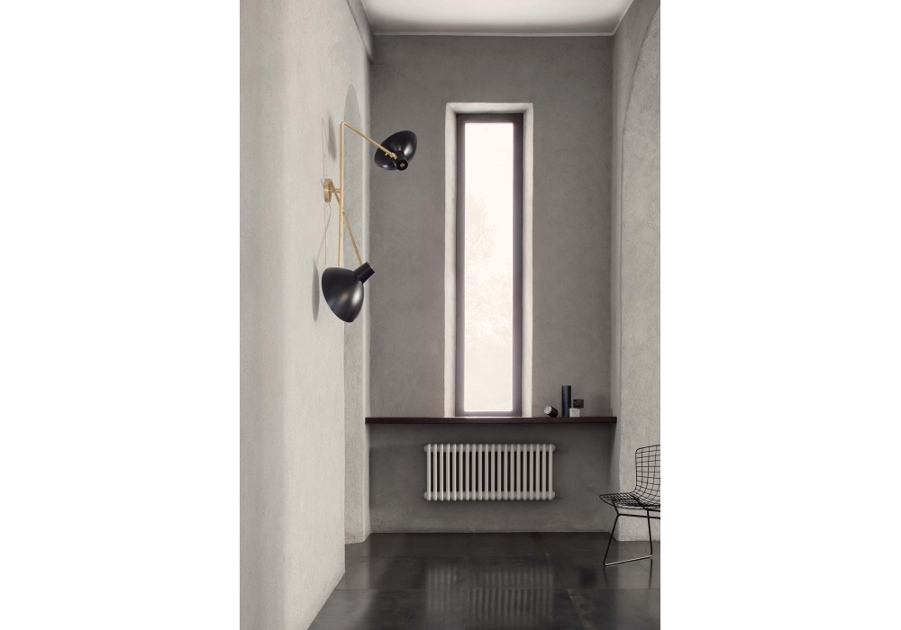 VVCinquanta Twin diseñada por Vittoriano Viganò para Astep es una lámpara de pared con difusores de aluminio, estructura en latón disponible en diferentes acabados.