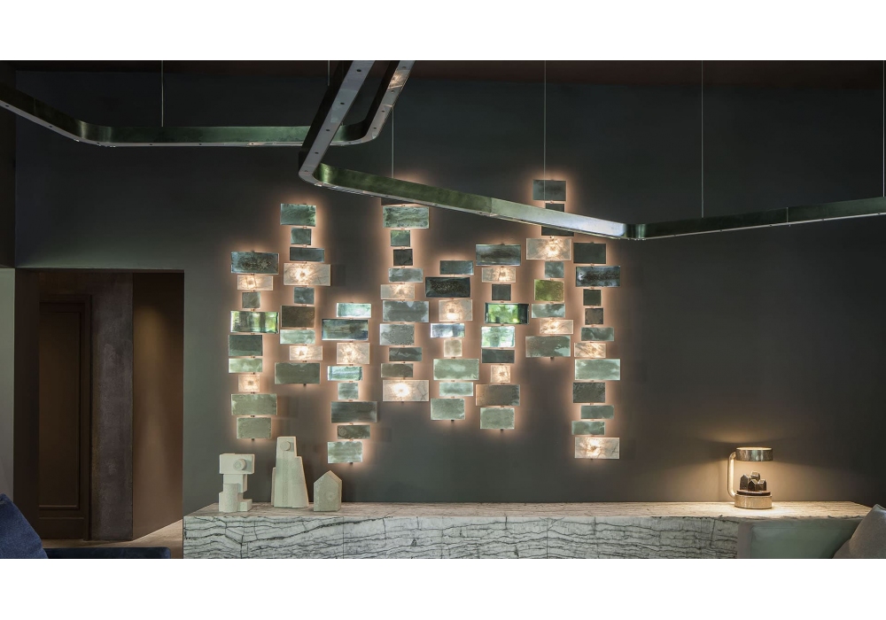 Abaco diseñada por Massimo Castagna para Henge es una lámpara de pared LED realizado con estructura metálica con pantalla en piedra Cristal Blanco a juego y acabados en metal. Disponible en diferentes acabados y dimensiones.