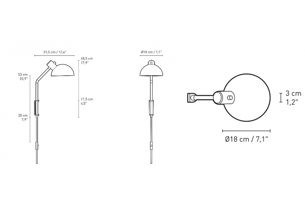 MO300 diseñada por Mads Odgård para Carl Hansen & Søn es una lámpara de pared con pantalla y base de acero con revestimiento en polvo disponible en diferentes colores. Casquillo eléctrico E12 o E14 según el país. Cable de tela negro de 2,5 m con interruptor.