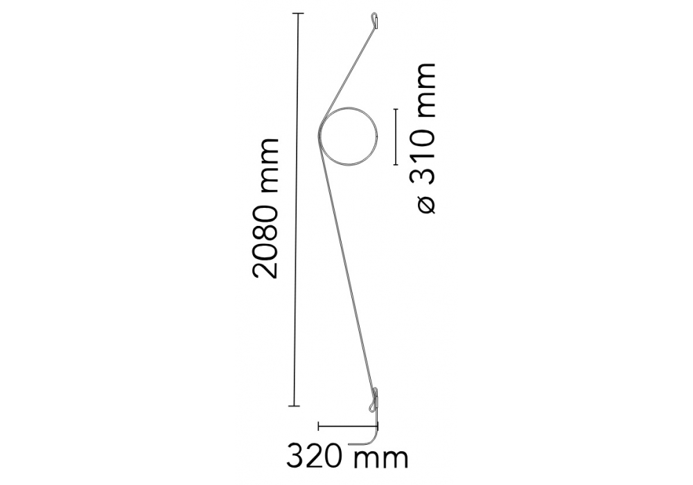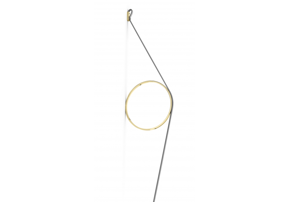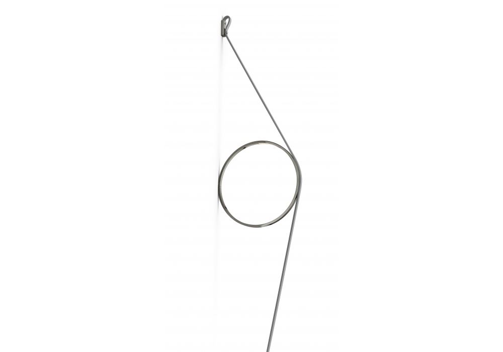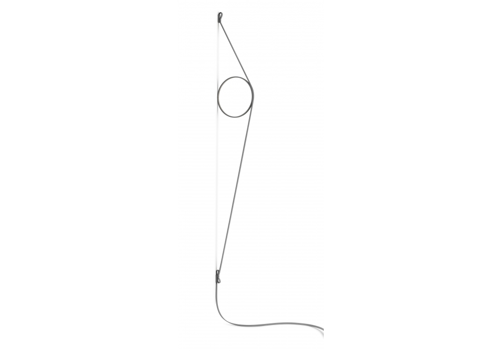 Wirering diseñado por Formafantasma para Flos es una luminaria de pared con luz indirecta compuesta por un cuerpo de aluminio extruido calandrado con acabado galvánico o pintado. El cable tangente especial, de goma coloreada, proporciona la alimentación. El cable se fija a la pared mediante juntas de ABS con el mismo acabado que el anillo. Función de regulación de intensidad mediante un pedal en el cable. Alimentación mediante enchufe con conectores intercambiables. Fuente de luz LED incluida.