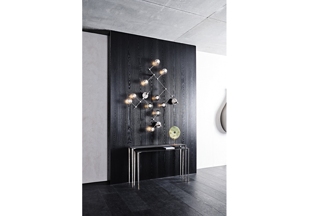 Circuit diseñado por STC Studio para Cattelan Italia es un aplique LED integrado disponible en tres modelos. Estructura en acero lacado barnizado titanio y níquel satinado. Pantallas en vidrio borosilicato: cuanto más pequeñas en color transparente, más grandes en fumé.