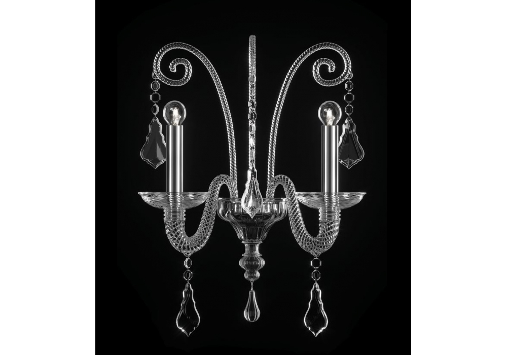 Izmir diseñada y producida por Barovier & Toso es una lámpara de pared con estructura portante y decoraciones en metal dorado galvanizado o cromo pulido. El cuerpo de la lámpara y los brazos están totalmente revestidos de cristal veneciano adornado con colgantes de cristal. La fuente de luz utilizada es del tipo LED regulable o halógena. Izmir está disponible en diferentes acabados.