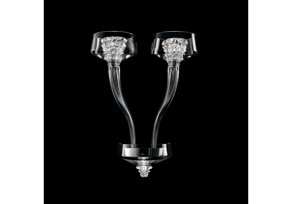 Rosati diseñada y producida por Barovier & Toso es una lámpara de pared con estructura portante y detalles en metal galvanizado dorado o cromo brillo. El cuerpo de la lámpara está cubierto de vidrio veneciano con decoraciones de cristal y adopta fuentes de luz LED regulables. Rosati está disponible en diferentes acabados.