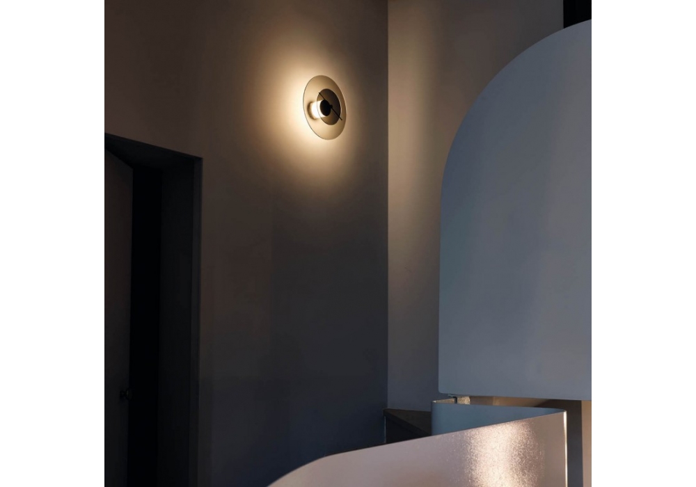 Delumina diseñada por Giulia Liverani para DCW Éditions es una lámpara de pared compuesta por dos discos de vidrio. Mediante un dial, es posible variar la tonalidad del disco superior, pasando de la transparencia a la opacidad total, permitiendo que pase más o menos luz según se desee.