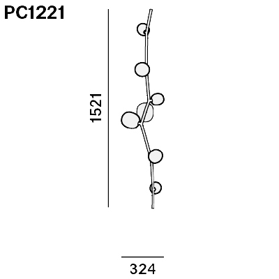 | Dimensiones | PC1218 29,6 x H 50,4 cm; PC1219 35,5 x H 96,6 cm; PC1220 32,6 x H 128,6 cm; PC1221 32,4 x H 152,1 cm; PC1222 29,6 x H 169,8 cm; PC1223 37 x H 197,7 cm. |