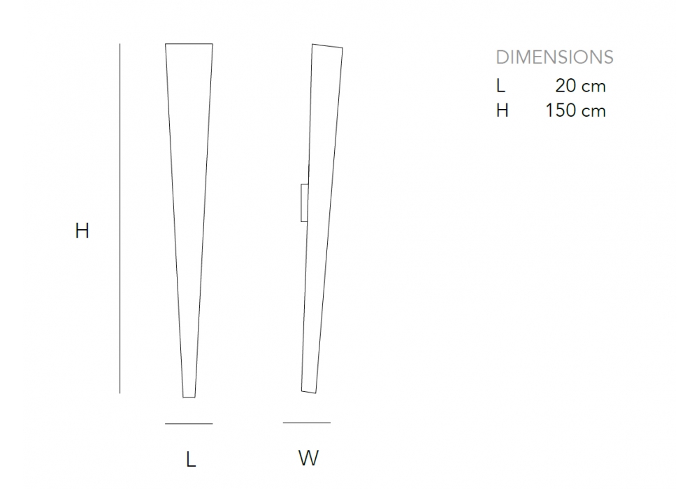 Torch diseñada y producida por Quasar es una lámpara de pared con cuerpo de forma cónica en aluminio. La fuente de luz adoptada es LED o halógena.