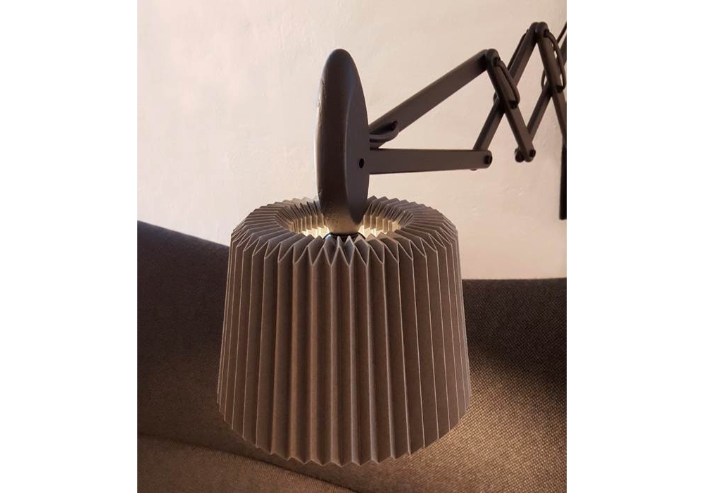 Sax 233, diseñada por Erik Hansen & Harrit SØrensen+Samson para Le Klint, es una lámpara de pared, compuesta por la combinación de material de metal, madera, plástico y papel. Estructurado con un sistema de pantógrafo, permite tener una lámpara muy versátil, dando profundidad y al mismo tiempo dimensiones reducidas y compactas. La pantalla tiene forma circular y está enriquecida por una superficie con pliegues regulares y precisos para garantizar una difusión óptima de la luz. La fuente de luz utilizada es LED o halógena (no incluida), alimentada por un cable revestido de plástico blanco. Sax 233 está disponible en diferentes acabados de madera y con pantalla en plástico y papel refinado.