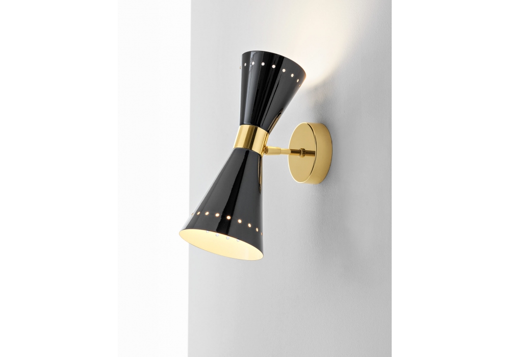 Megafono diseñado y producido por Stilnovo es un aplique LED con cuerpo de latón galvanizado en color oro en dos acabados: oro-negro y oro-marfil. El difusor es cónico en metal y adopta una fuente de luz LED de doble emisión. Megafono está disponible en versión simple o doble.