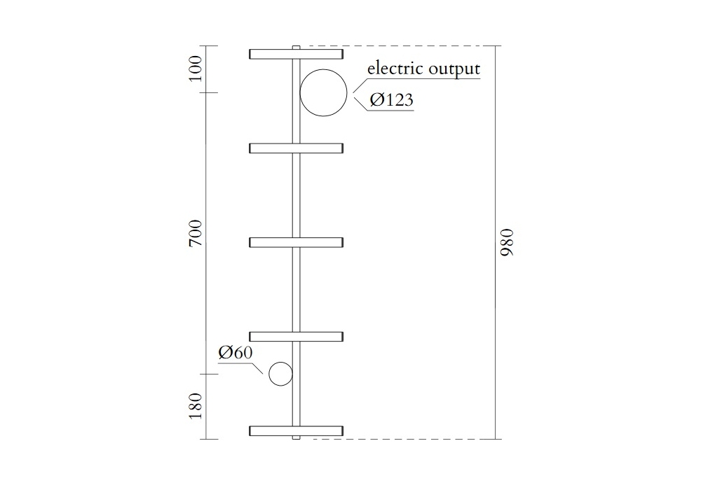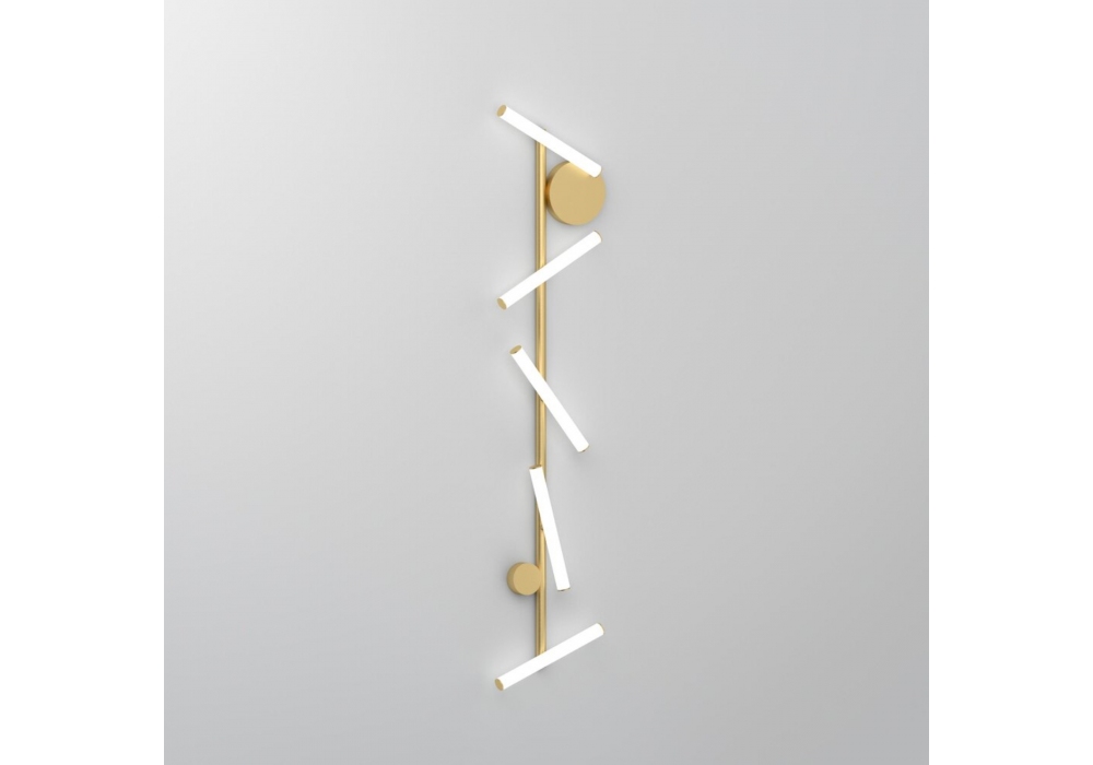 Sticks diseñada por Atelier Areti es una lámpara de pared realizada en latón cepillado, pintado de negro o níquel. Tubos de luz acrílicos blancos.