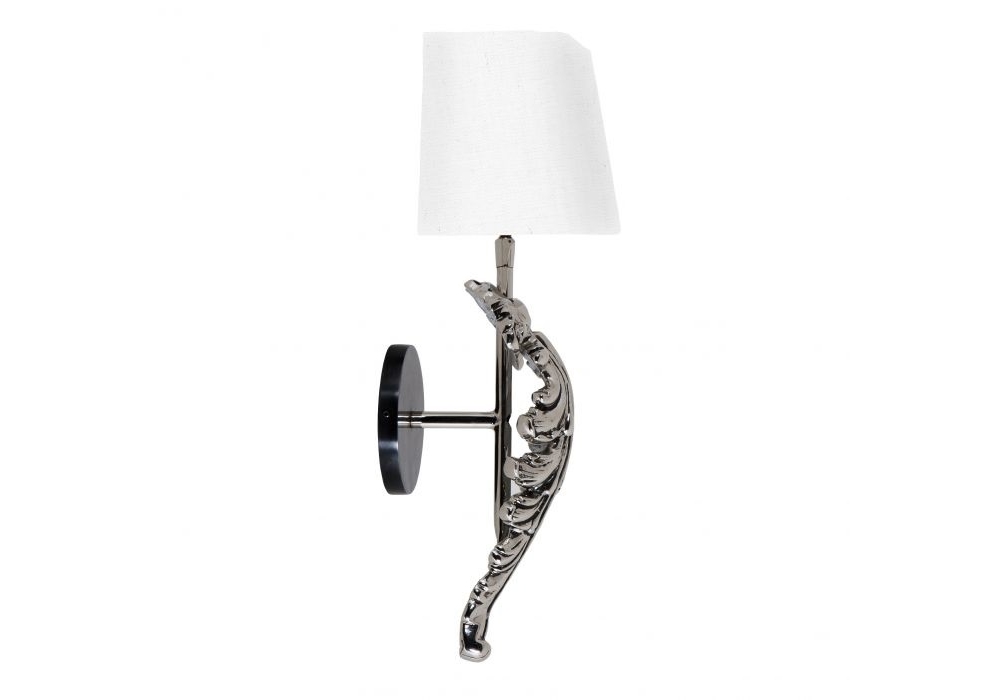 Wall Lamp Beau Site diseñada por Eichholtz es una lámpara de pared adornada con una elaborada decoración de volutas y un acabado en níquel pulido. Disponible en dos acabados