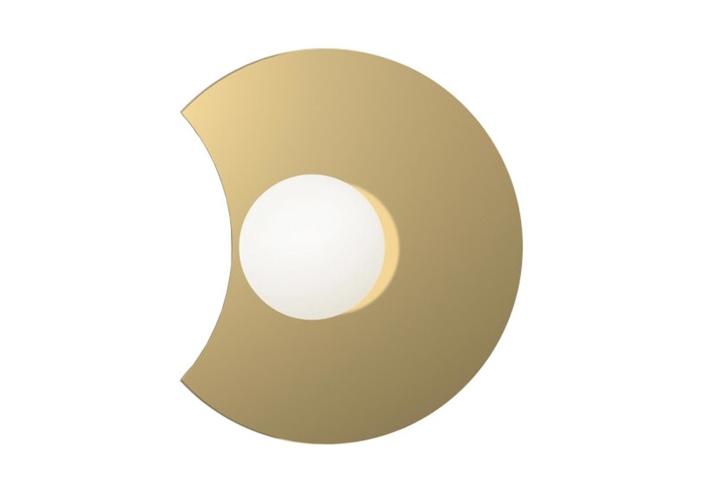 Disc and Sphere Intersecting/Bent diseñada por Atelier Areti es una lámpara de pared en latón pulido, ataque en metal pintado blanco o negro y difusor de cristal blanco. Disponible en diferentes modelos.