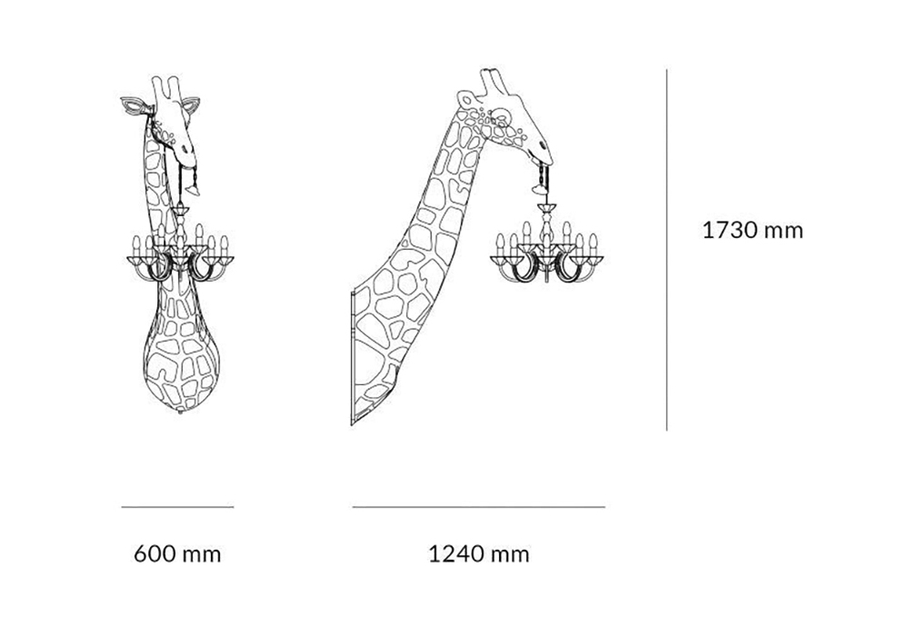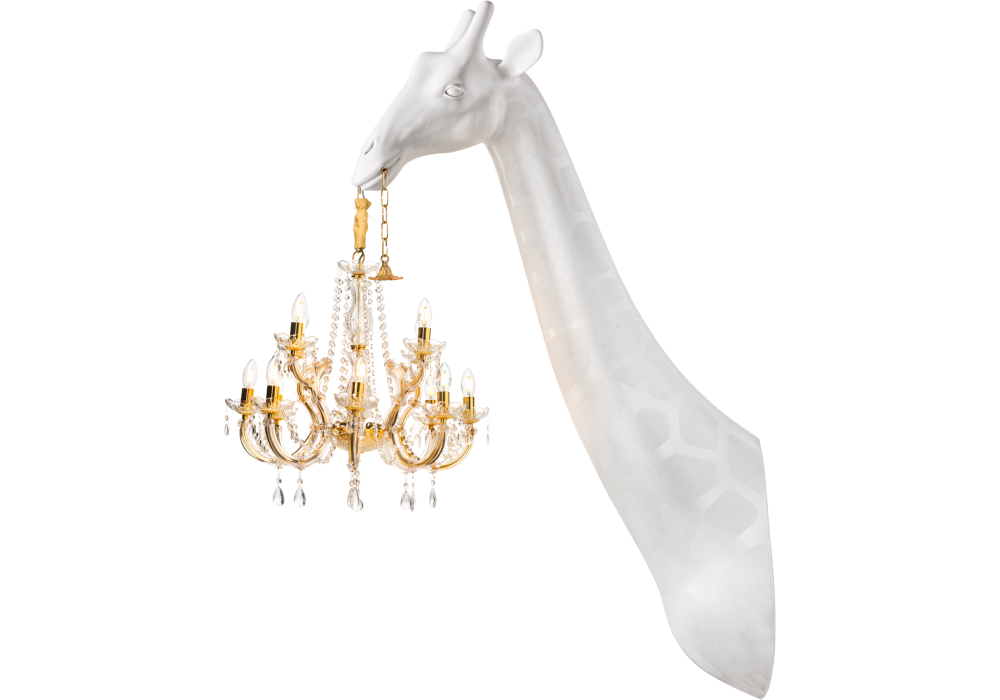 Giraffe in Love diseñada por Marcantonio para Qeeboo es una lámpara de pared realizada en polietileno, policarbonato y cristal disponible en diferentes acabados.