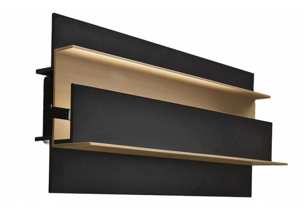 Secret diseñada por Massimo Tonetto para Venicem es una lámpara de pared de luz indirecta. Estructura en latón bruñido claro y negro mate.