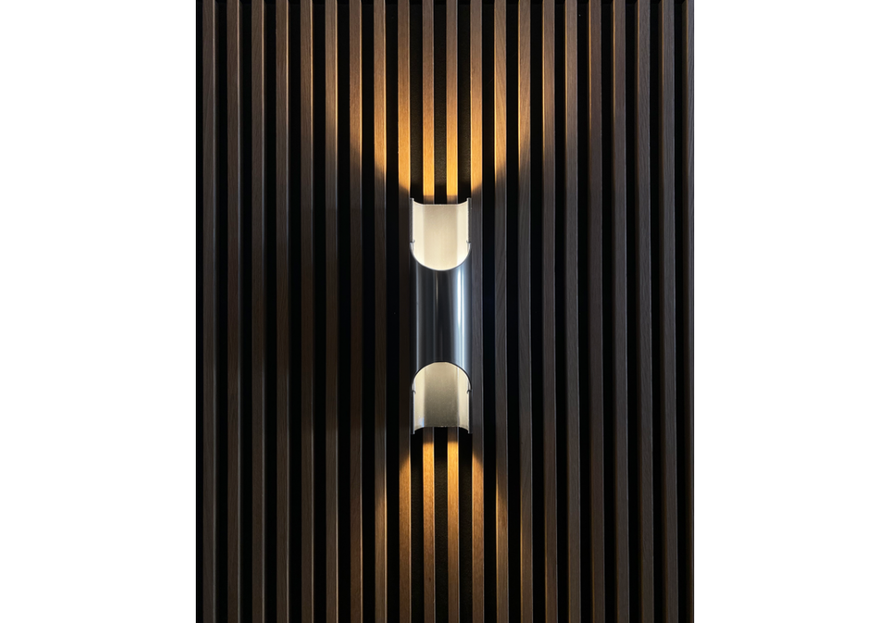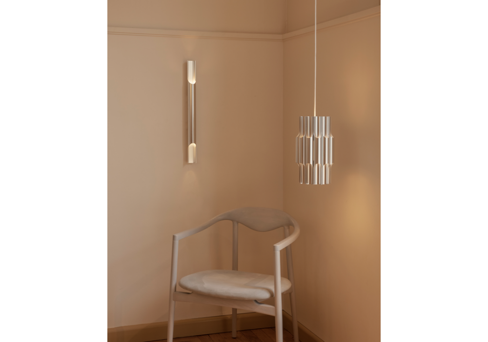 Pan diseñada por Bent Karlby para Lyfa es una lámpara de pared realizada en aluminio pulido, su forma está inspirada en la flauta de pan. Disponible en diferentes tamaños.