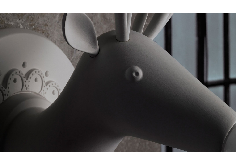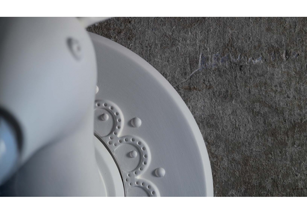 Marnìn diseñada por Matteo Ugolini para Karman es una lámpara de pared en cerámica blanca mate. Uso interno. Bombilla no incluida.