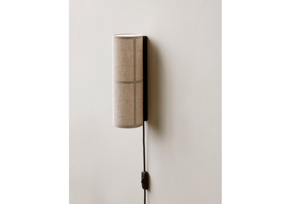 Hashira diseñada por Norm Architects para Audo Copenhagen es una lámpara de pared realizada en acero pintado en polvo negro y pantalla de tela.
