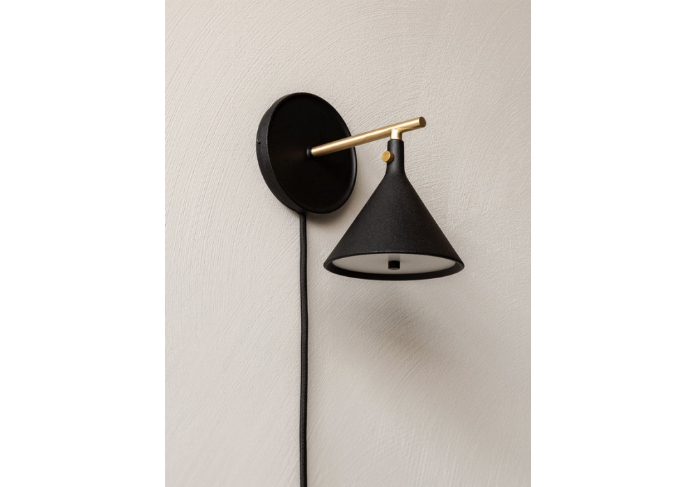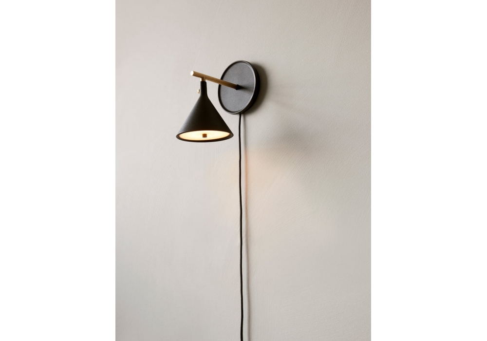 Cast Sconce diseñada por Tom Chung & Jordan Murphy para Audo Copenhagen es una lámpara de pared realizada en aluminio pintado de negro, partes metálicas en latón cepillado.