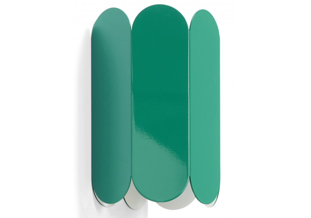 ARCS Sconce diseñada por Muller Van Severen para Hay es una lámpara de pared realizada en chapa de acero prensada y doblada con acabado pulido o espejo y caja de empalme de pared en chapa blanca con acabado efecto mojado. Disponible en diferentes acabados.