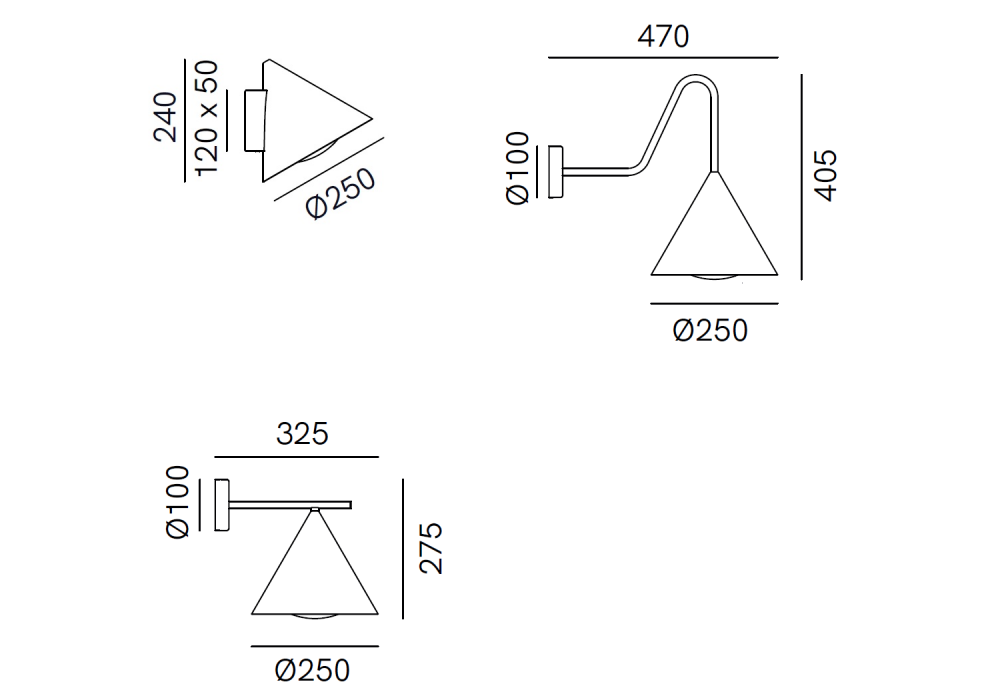 Cone diseñada por DT Studio para Il Fanale es una lámpara de pared para exterior con estructura y pantalla de latón. La pantalla tiene forma cónica con un difusor semiesférico de cristal opalino. La fuente de luz adoptada es de tipo LED. El cono está disponible en diferentes modelos.