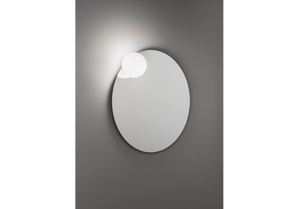 Circ diseñado por Nahtrang Studio para Estiluz es un espejo circular con aplique de pared incorporado. El difusor está estructurado por una semiesfera de polietileno translúcido beige con fuente de luz LED integrada con sistema dimmer triac. Circ está disponible en diferentes versiones.