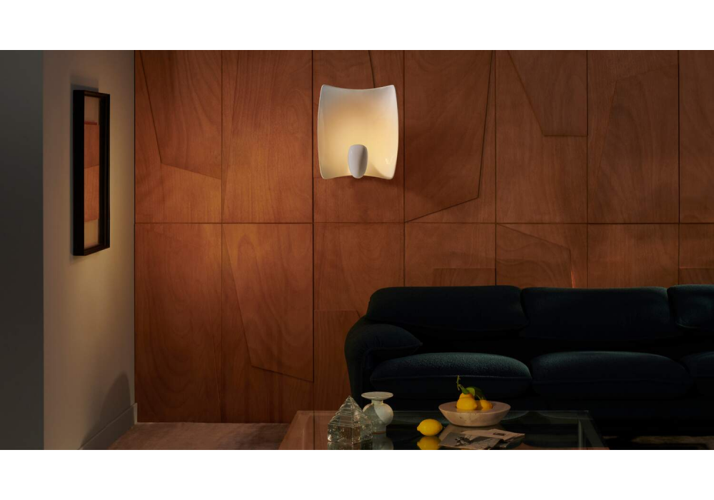 Valor.S Wall diseñada por Philippe Starck para Cassina es una lámpara de pared decorada a mano realizada en cerámica vidriada y aluminio. La decoración coloreada se hace siempre en el lado convexo. Disponible en diferentes acabados.