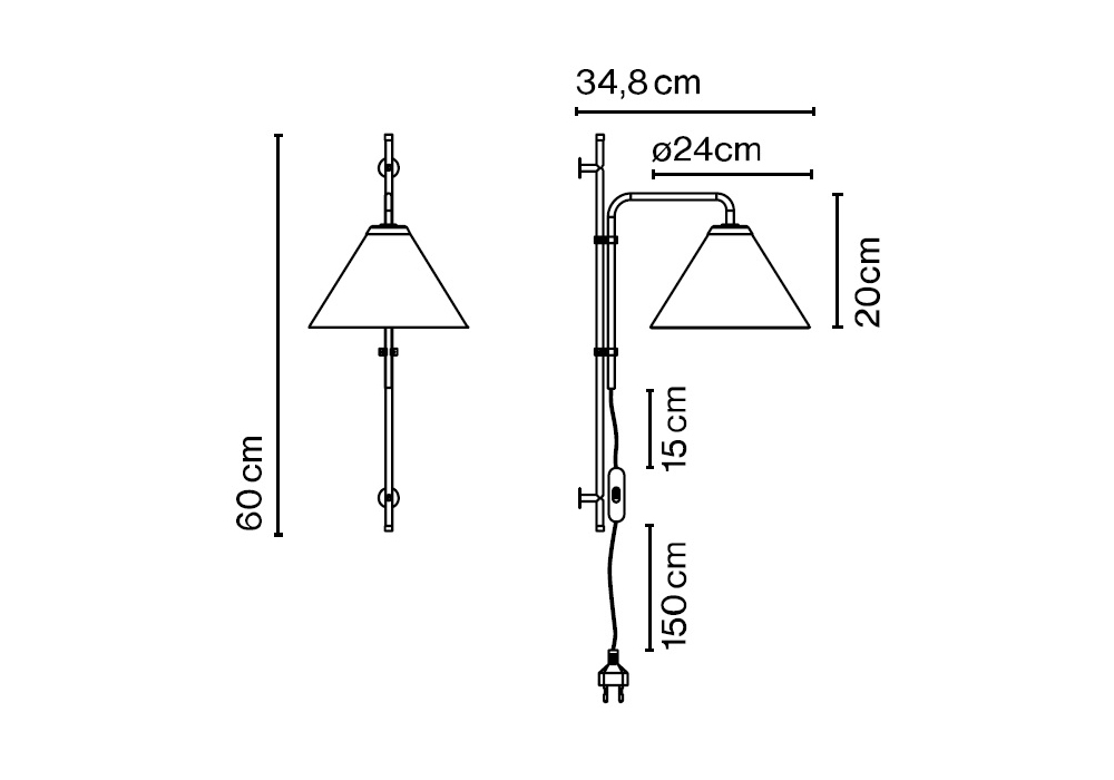 Funiculì A Fabric diseñada por Lluís Porqueras para Marset es una lámpara de pared realizada en hierro pintado de negro y pantalla en poliéster blanco o arena.