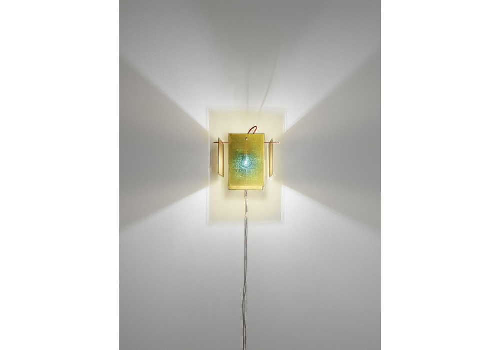 24 Karat Blau diseñada por Axel Schmid para Ingo Maurer es una lámpara de pared con estructura en metal y difusor en pan de oro laminado con material sintético.