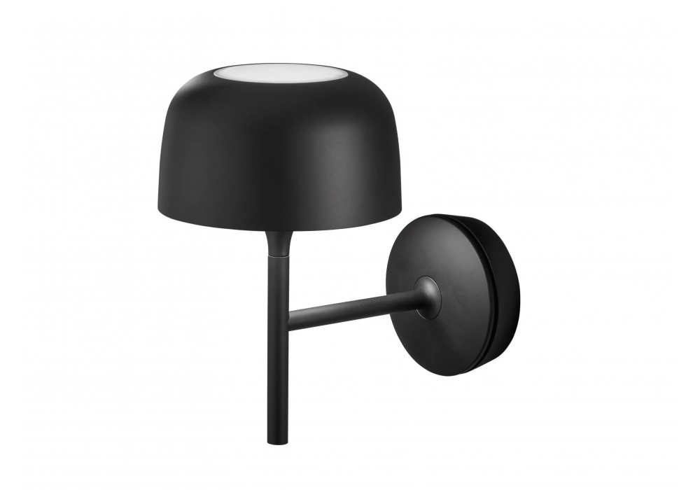 Bol diseñado por Estudi Manel Molina para Bover es un aplique con estructura en aluminio y latón pintado en color negro mate. La pantalla tiene forma redondeada con difusor de policarbonato y apantalla una fuente de luz LED regulable Triac.