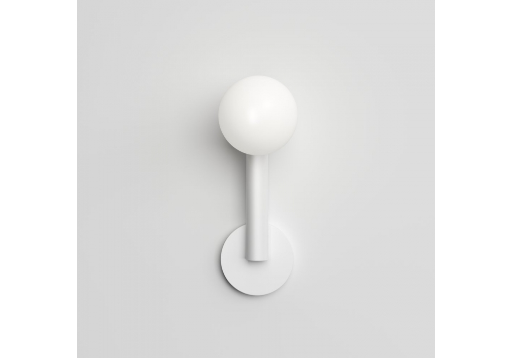 Tube With Globes and Cones diseñada por Atelier Areti es una lámpara de pared realizada en metal pintado, disponible en diferentes acabados. Bajo pedido, también es posible personalizar los colores del tubo y del rosetón.