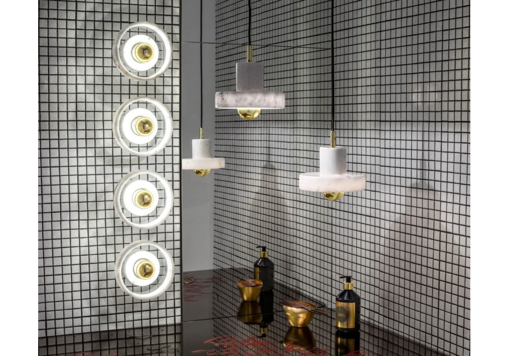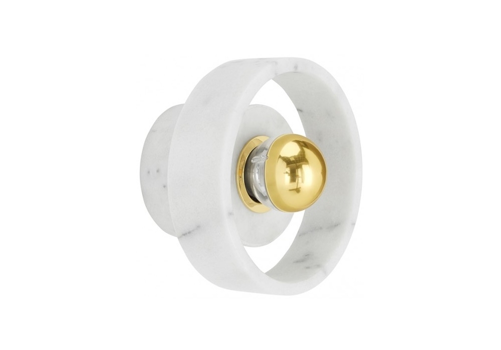 Stone Wall diseñada por Tom Dixon es una lámpara de pared en mármol y corona de latón.