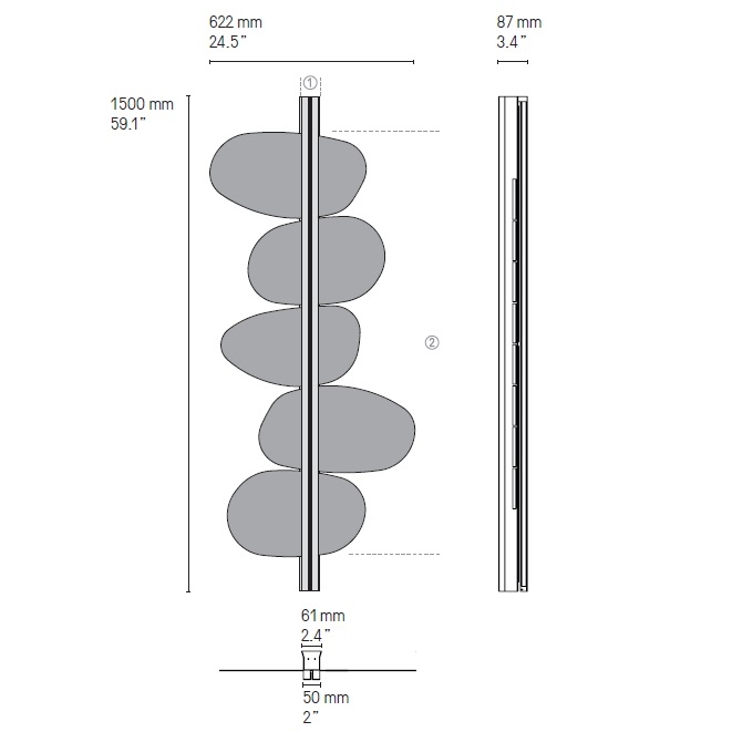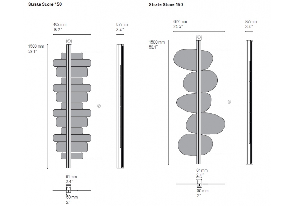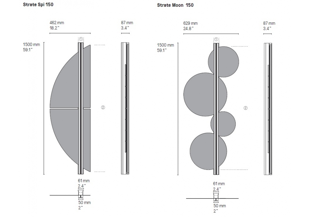 | Dimensiones | Moon 150_ 62.9 x 8.7 x H 150 cm; Score 150_ 46.2 x 8.7 x H 150 cm; Spi 150_ 46.2 x 8.7 x H 150 cm; Stone 150_ 62.2 x 8.7 x H 150 cm. |