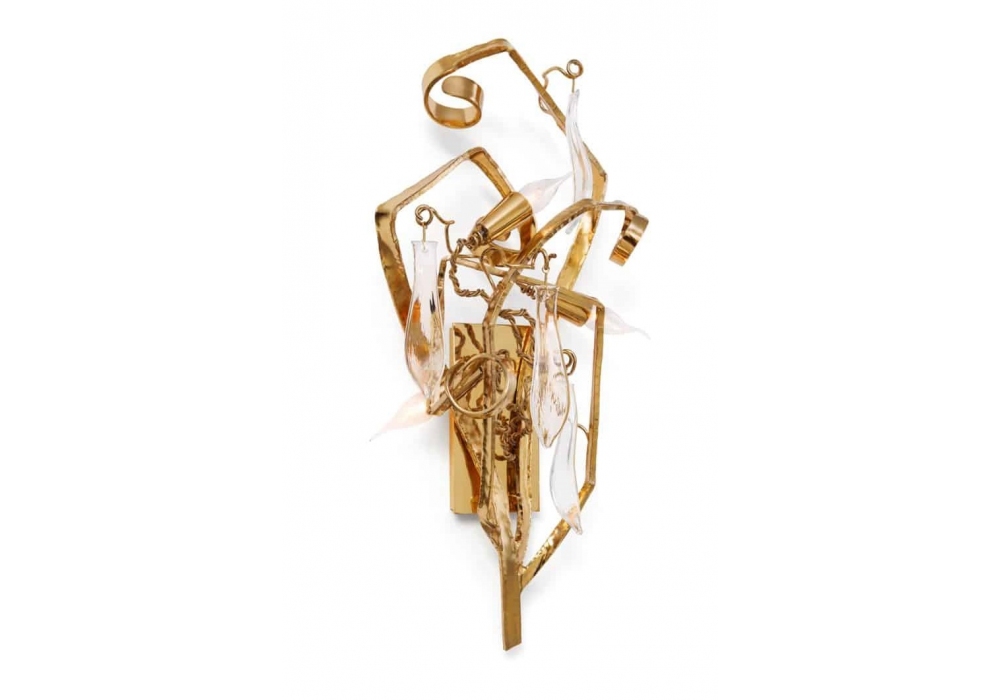 Delphinium diseñada por William Brand para Brand Van Egmond es una lámpara de pared realizada en metal y elementos decorativos de vidrio. Disponible en diferentes acabados.