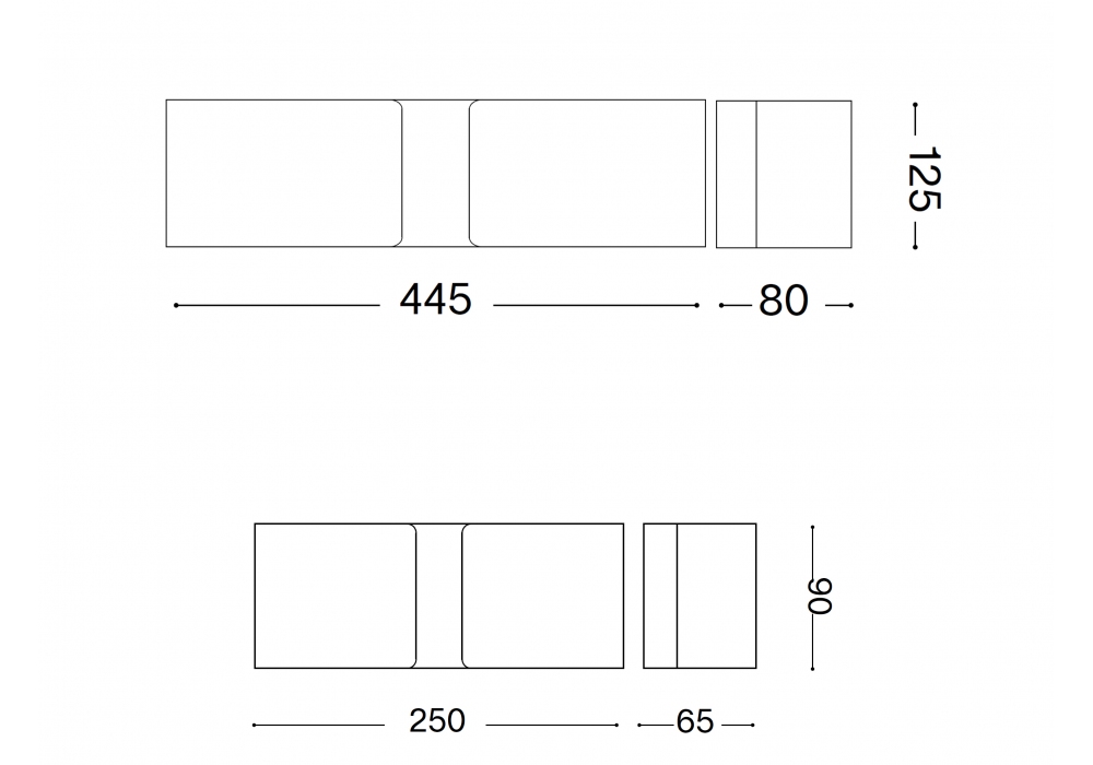 | Dimensiones | 44 x 11 x H 12,5 cm; 25 x 6,5 x H 9 cm. |