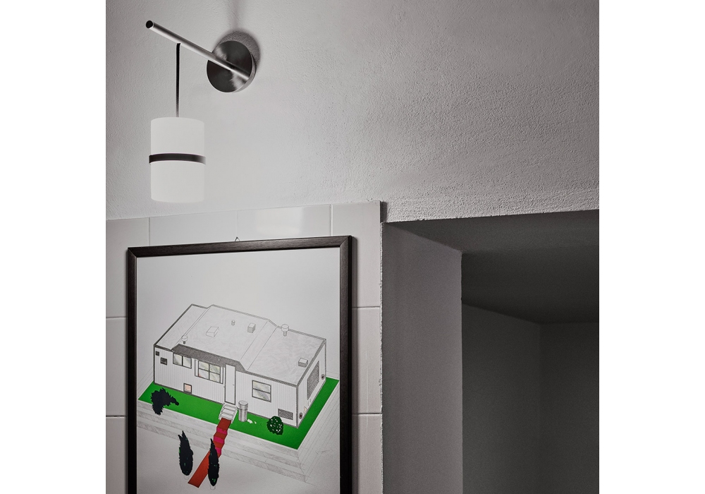 Piccola Boa diseñada por Carlo Guglielmi para Firmamento Milano es una lámpara de pared de luz difusa realizada con una estructura de acero y un difusor de vidrio soplado opalino grabado al ácido.