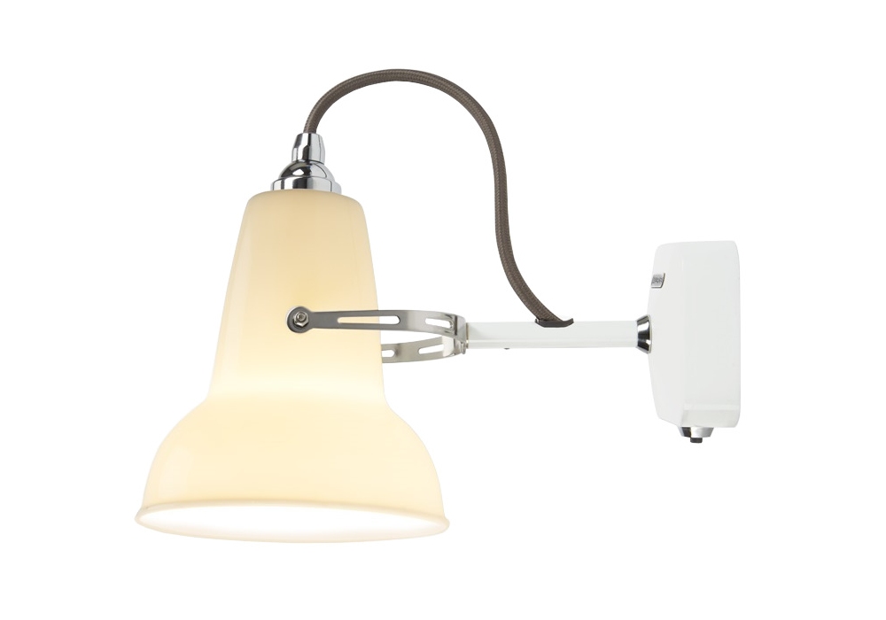 Original 1227 Mini Light diseñada por George Carwardine para Anglepoise es una lámpara de pared realizada en acero. Disponible en diferentes acabados, en el acabado "Blanco Puro" la pantalla es de porcelánico Bone.