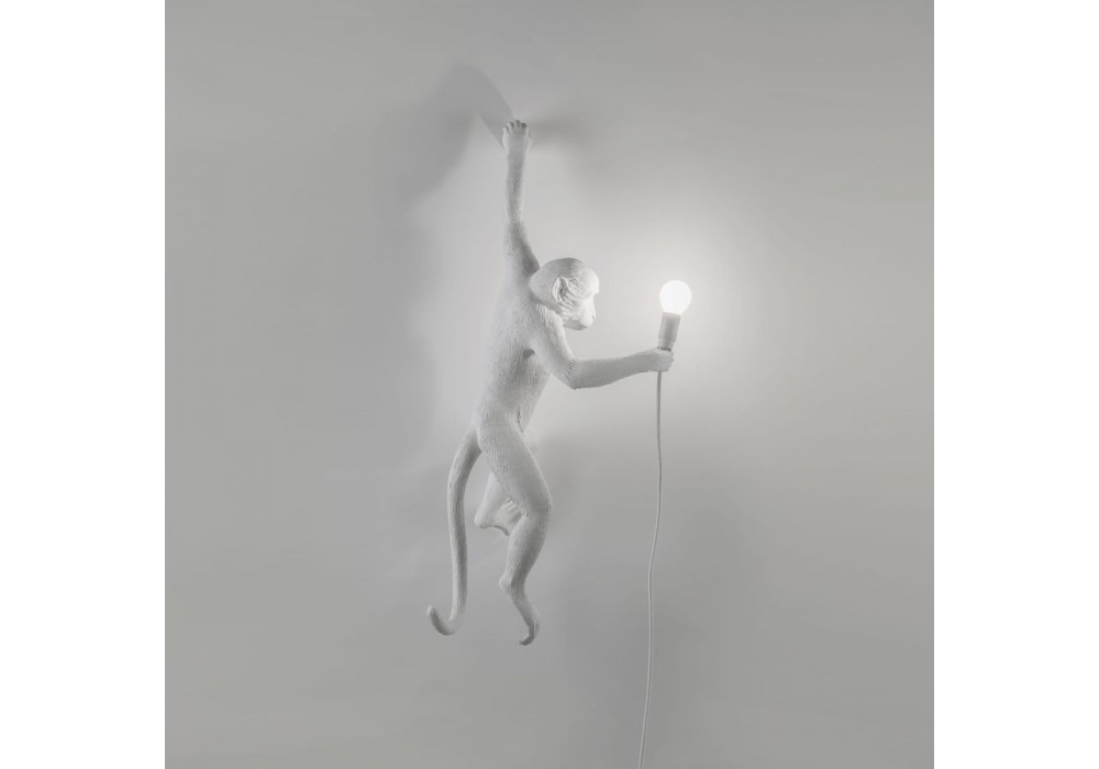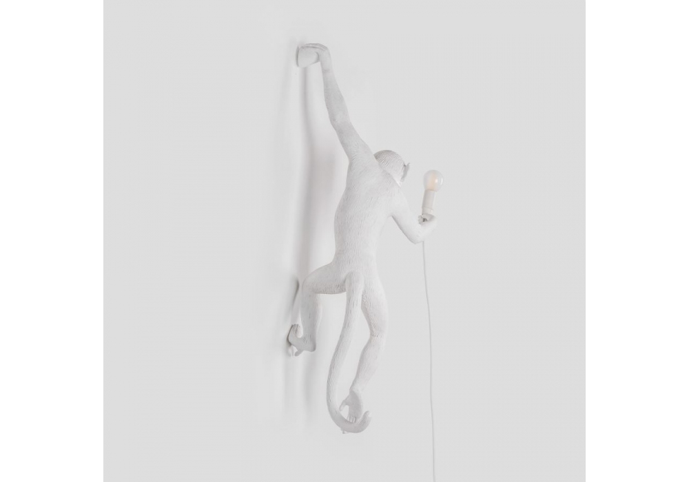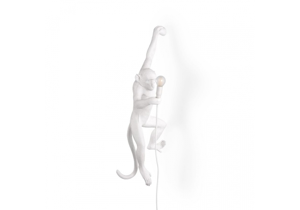 La Lámpara Monkey diseñada por Marcantonio Raimondi Malerba para Seletti es una lámpara de pared realizada en resina blanca y sostenida por una cuerda de tela. La fuente de luz adoptada es del tipo LED de filamento.