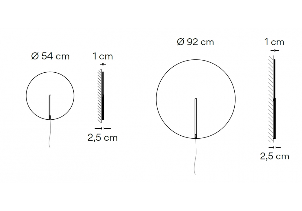 | Dimensiones | Ø 54 x 2,5 x H 54 cm; Ø 92 x 2,5 x H 92 cm. |