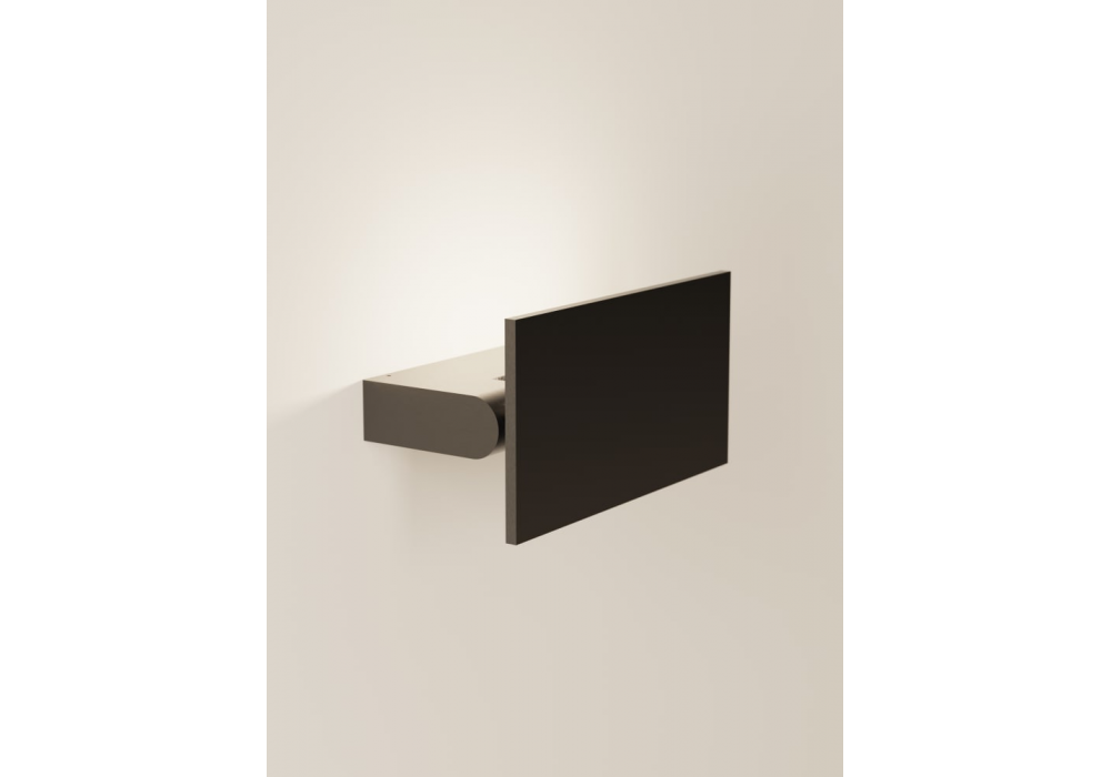 Sen diseñada por Gwenael Nicolas, Curiosity para Agape es una lámpara de pared orientable con luz LED fabricada en aluminio anodizado cepillado en acabado negro.