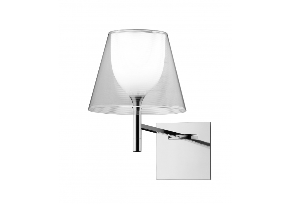 KTribe W diseñada por Philippe Starck para Flos es una lámpara de pared con luz difusa e intensidad regulable en cuatro niveles mediante regulador remoto. Estructura de zamak cromado, aluminio pulido y acero galvanizado. Difusor interior de policarbonato opalino y pantalla exterior de PMMA. Regulador integrado. Bombilla no incluida.