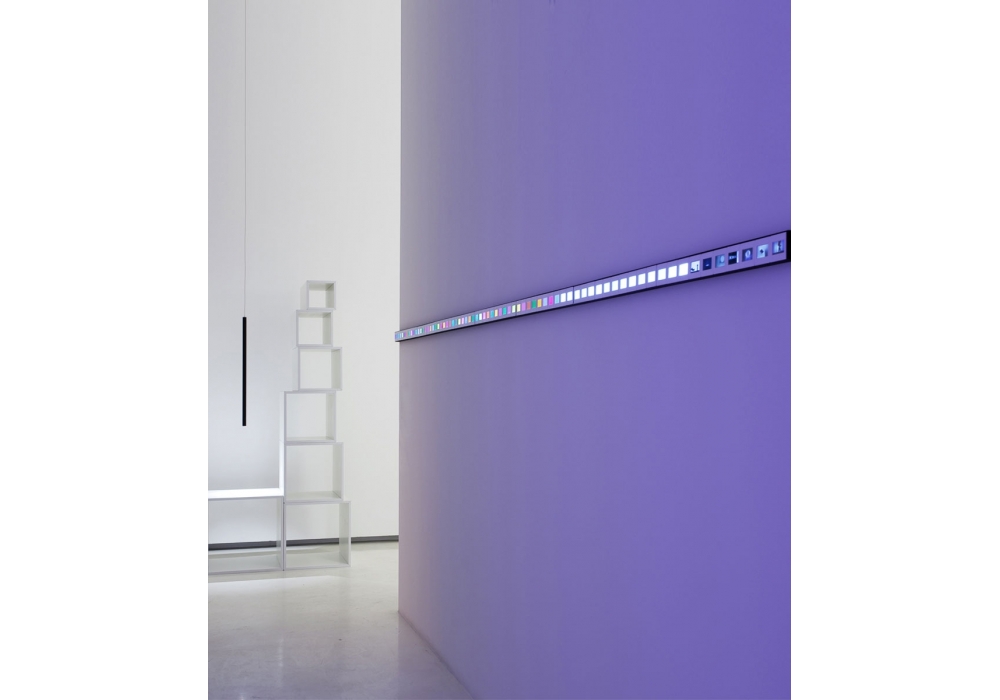 Film diseñada y producida por Davide Groppi & Alessandra Dallagiovanna es una lámpara de pared modular completamente estructurada por la combinación de policarbonato y metal pintado en negro mate. La fuente de luz adoptada es del tipo LED alimentada por un transformador con enchufe.