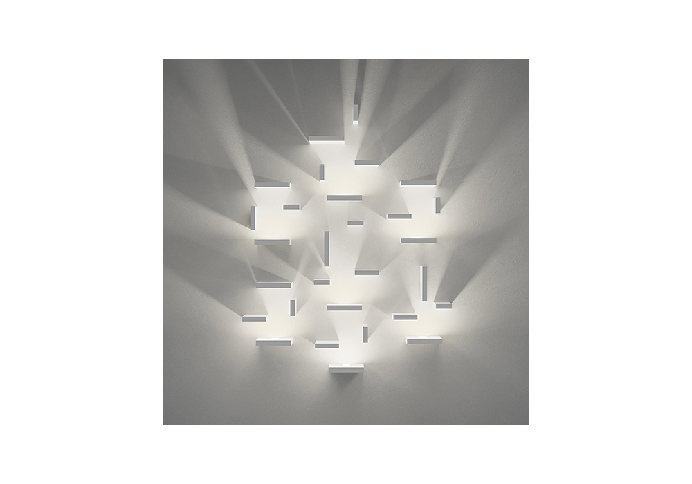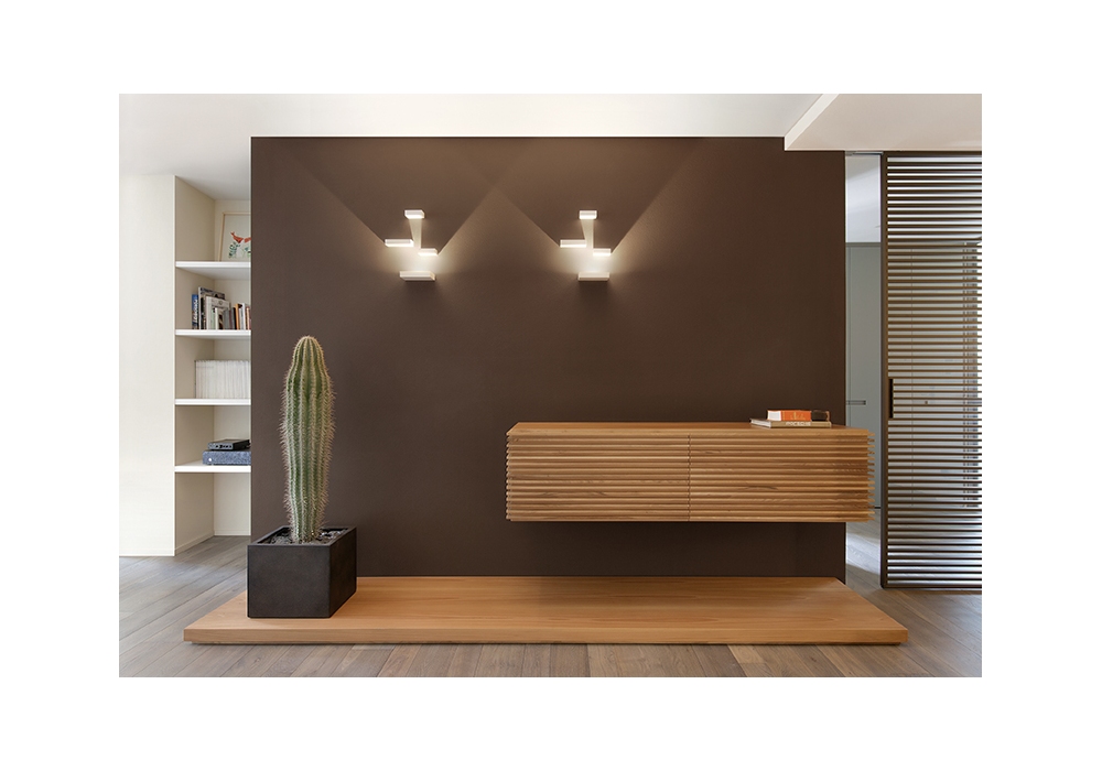 Set diseñado por Xuclà para Vibia es un aplique cuadrangular con estructura de aluminio pintado. El difusor es de vidrio borosilicato con soporte de PVC y blindaje de las fuentes de luz LED regulables. El juego está disponible en diferentes modelos y acabados.