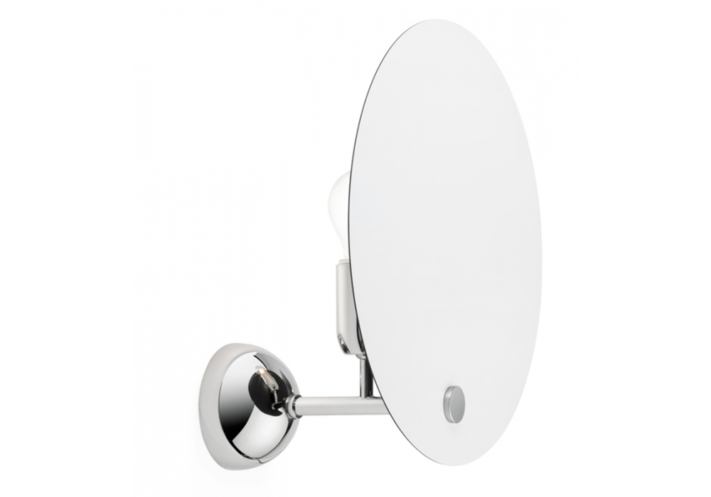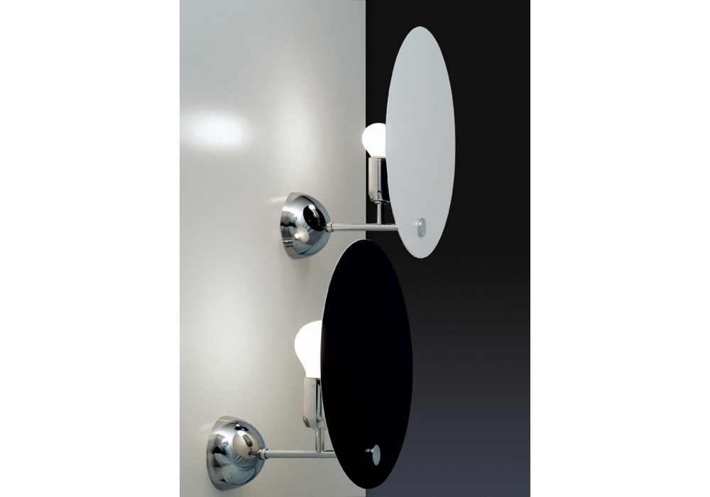 Kuta diseñada por Vico Magistrettidi para Nemo es una lámpara de pared con estructura portante en metal tubular cromado. El reflector tiene forma circular y protege una fuente de luz LED, halógena o fluorescente regulable.