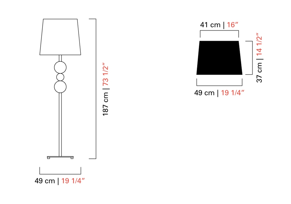Marta diseñada y producida por Barovier & Toso es una lámpara de pie con base circular y varilla vertical de metal enriquecida con aplicaciones esféricas en cristal veneciano. El difusor es de tela y protege una fuente de luz LED o halógena regulable. Marta está disponible en diferentes acabados.