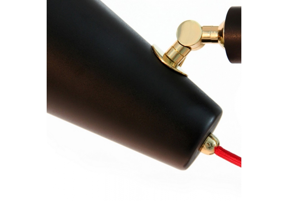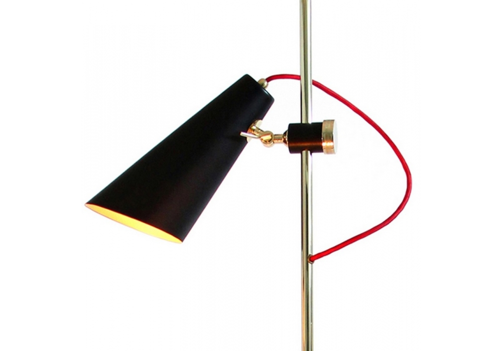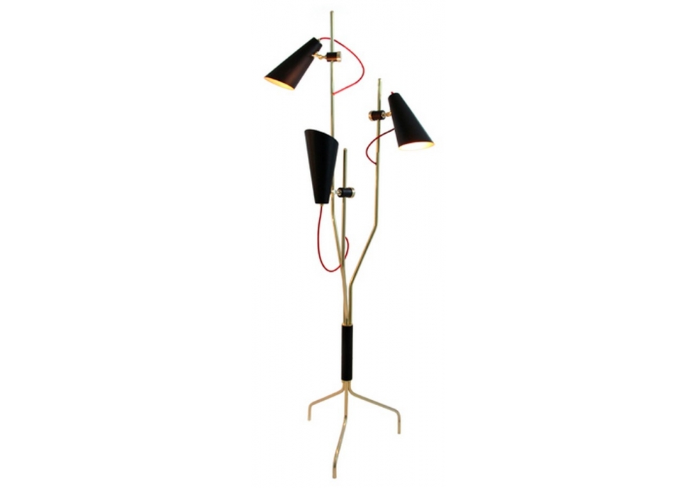 Evans diseñada por DelightFULL es una lámpara de pie con tres difusores orientables, acabados en pintura polvo negro mate y dorado.