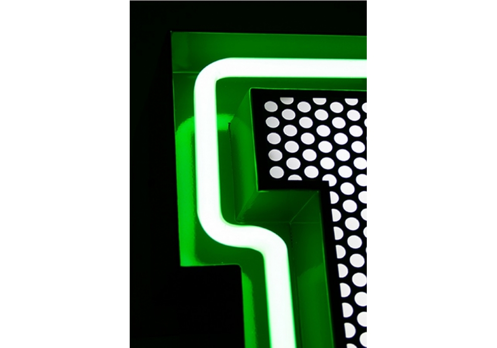 Graphic Collection - Letter T is a lamp designed by DelightFULL. This lamp recovers the retro style with a mix of urban style. The mixture of neon green with the interior lighting LED turns this letter almost hypnotic. It can be placed also outside. You can either put it on the ground or on the wall.